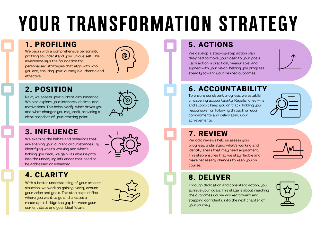 Coaching helps you step back, refocus on what truly matters, unlock your deepest desires, and achieve real, sustainable balance across all areas of life. It also helps you understand and improve your relationship patterns, fostering better communication and empathy. By shifting your mindset, you’ll build deeper, more meaningful connections and enjoy healthier, more fulfilling relationships.